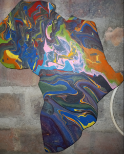 This fantastic marbled paint piece in the form of Africa was all made by our local talented artist , Christo, from the woodcutting to the painting – it will look lovely on any wall